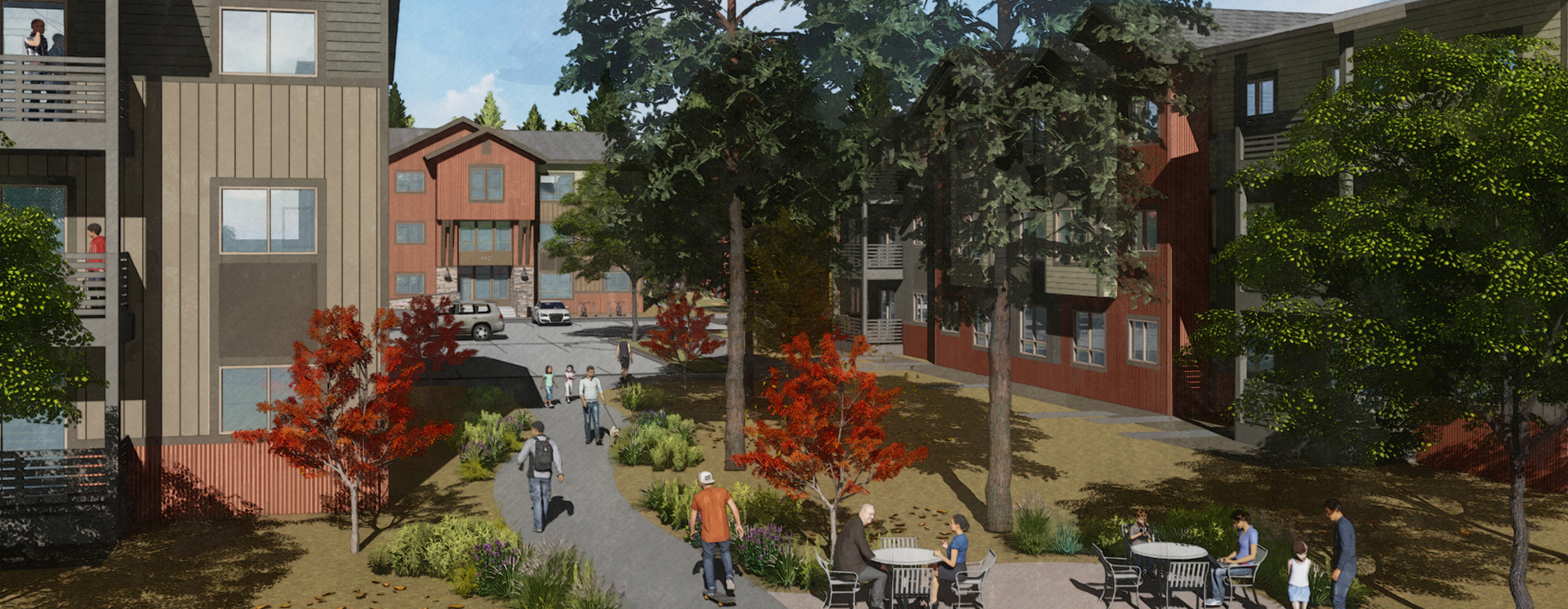 Artist's rendering of Sugar Pine Village following project completion.